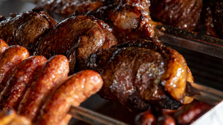 A celebration of South American BBQ tradition, featuring prime cuts like Assado de Tira (Beef Ribs), Spicy Chorizo, Galeto (Chicken), and Beef de Chorizo (Sirloin). Served with sides including couscous, green salad, chimichurri sauce, and bread. Minimum 30 guests required.