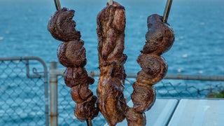 A 3-course feast with the finest meats including beef rump cap, chicken thigh, chorizo, lamb,pork, and an option for salmon or prawns (extra $15pp + GST). To start, enjoy Brazilianfinger foods like coxinha (potato croquettes with chicken), cheese bread (GF), and triple cheese balls (Veg). For dessert, indulge in spit-roasted pineapple with vanilla ice cream. Minimum 30 guests required.