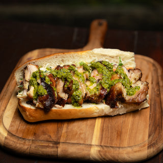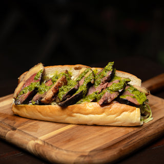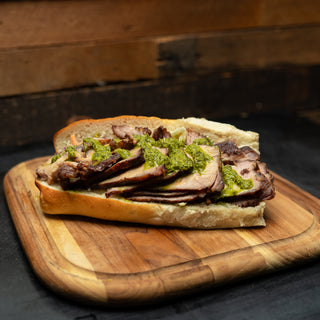 Juicy rump cap piled into a fresh bread roll with crunchy coleslaw, tangy tomato salsa, and your choice of sauce — a bold and satisfying bite.
